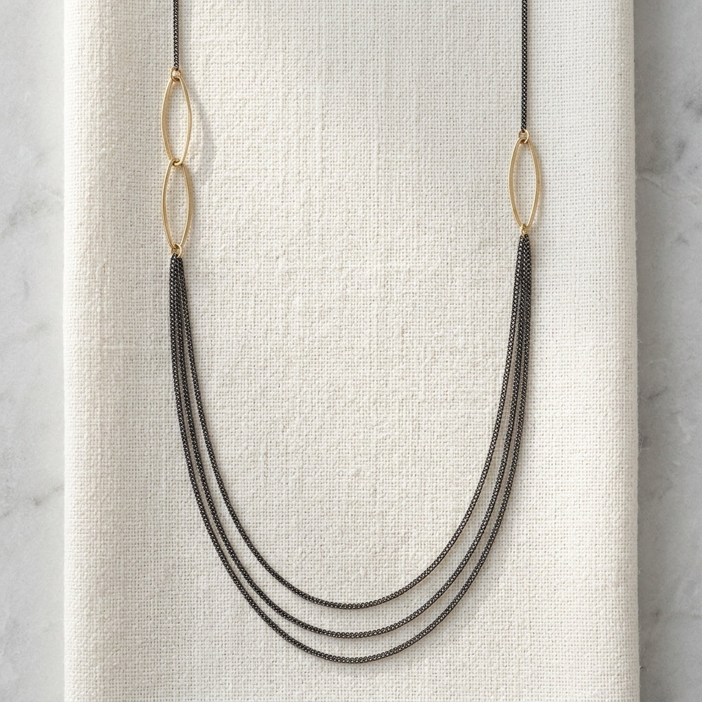 Add gleaming luster to your ensemble with this awe-inspiring LUA SHORT Multi-Chain Necklace. Layer it with other necklaces or go solo, it already matches every ensemble you have. You can wear it on those special occasions or save it for the more relaxed days. It features multiple layers of oxidized sterling silver chains with details of hand-shaped links on the sides.
