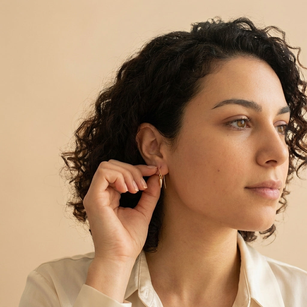 These SMALL SPIKE Earrings are must-haves for your jewelry collection. They are the ideal accessories for an extra pop of style and sophistication. With tiny spikes detail, these drop earrings are the perfect accessory to pair with daytime or evening wear. They are a simple yet powerful way to finish off your look.