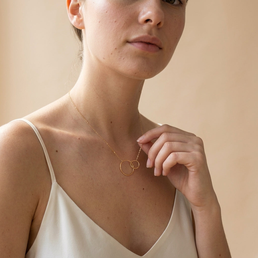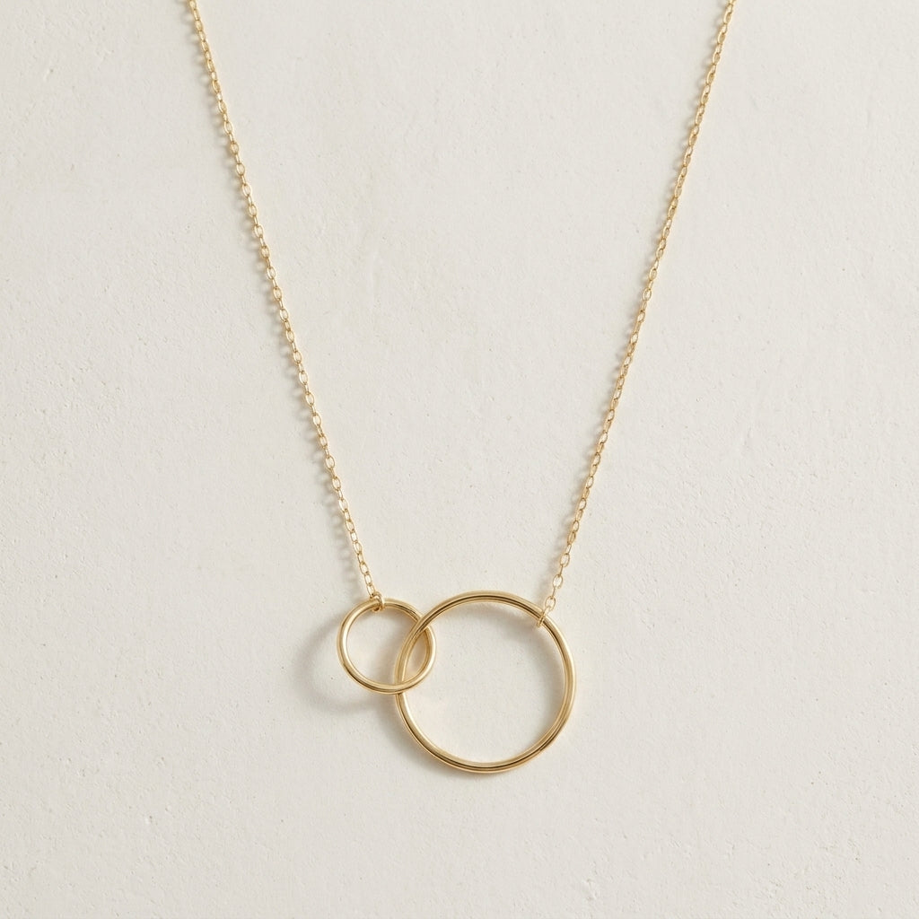 Adorn your lovely neckline with a statement piece like this DUO Circle Pendant Necklace. Keep your collection of gold jewelry accessories current and fun with this double ring pendant necklace, it features two different size hand-hammered circles attached to a delicate cable chain. Wear yours with a range of outfits for a complete look.